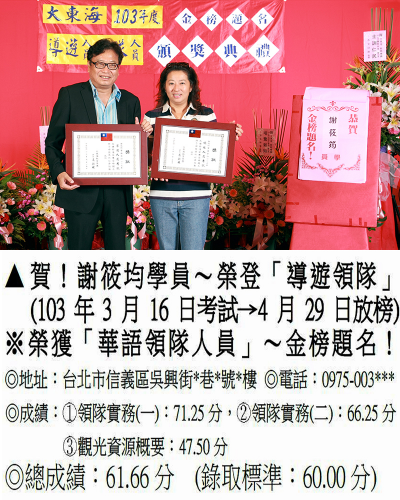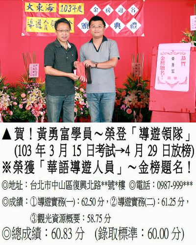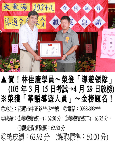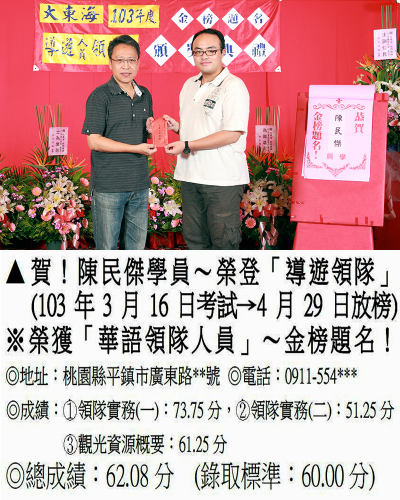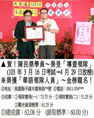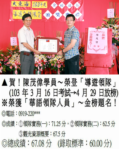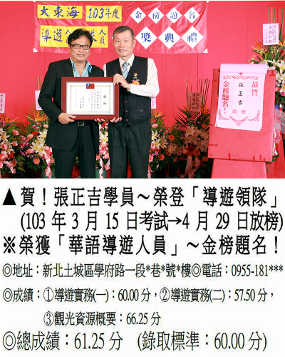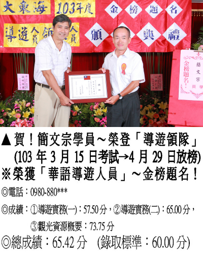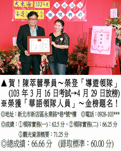 錄取分數‧領隊人員‧導遊人員‧證照考試