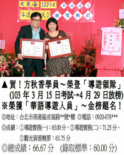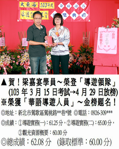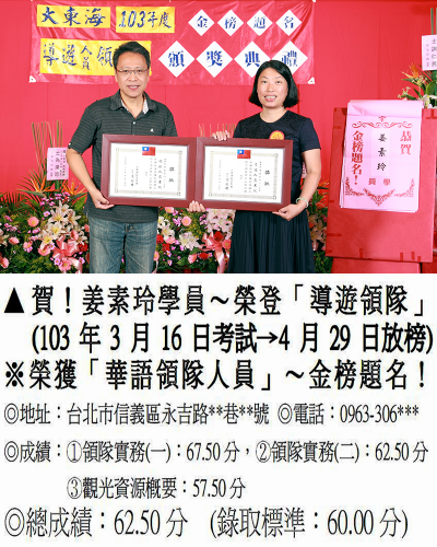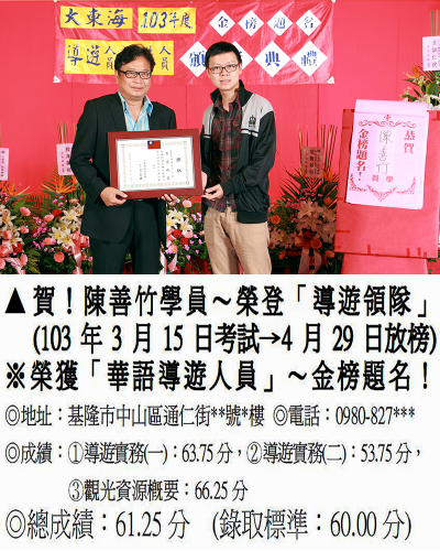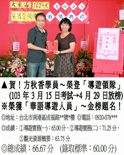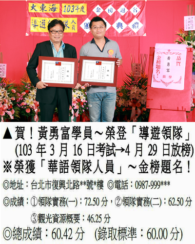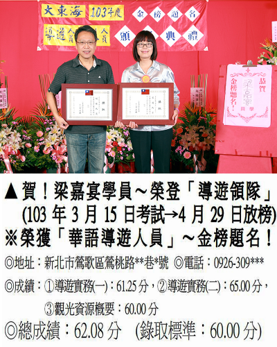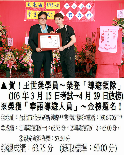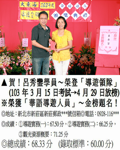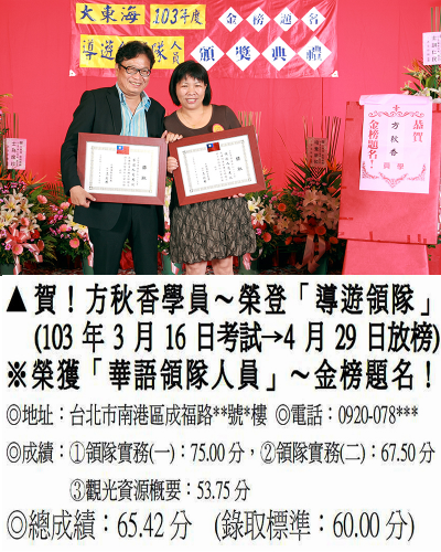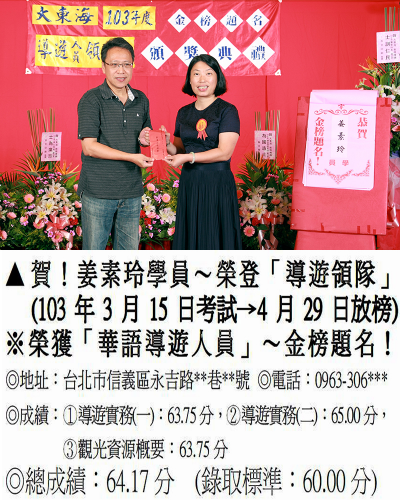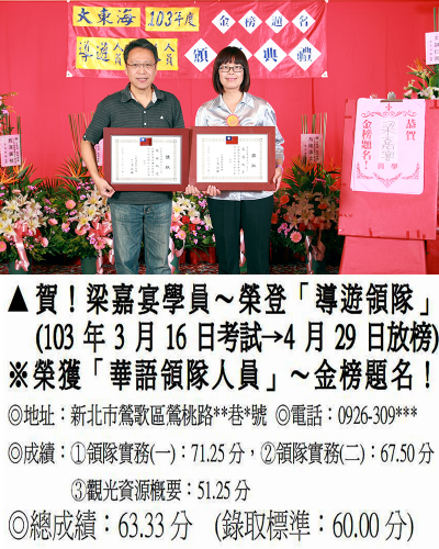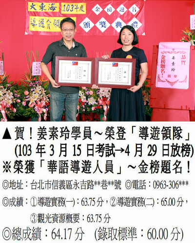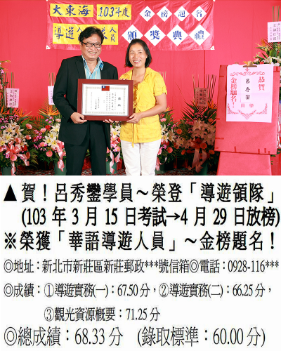 錄取分數‧領隊人員‧導遊人員‧證照考試