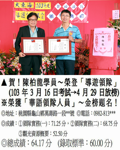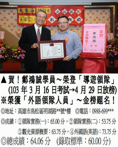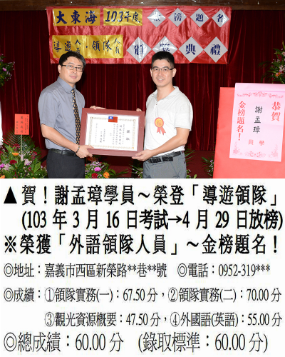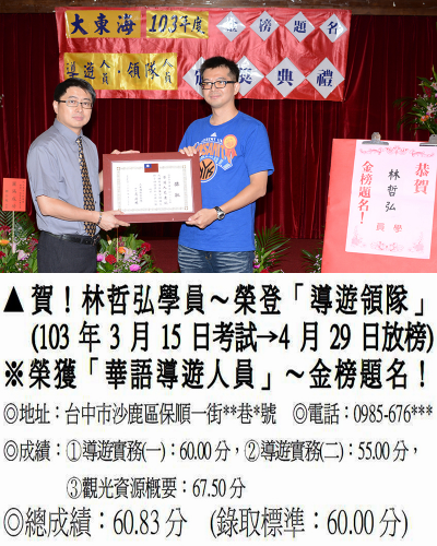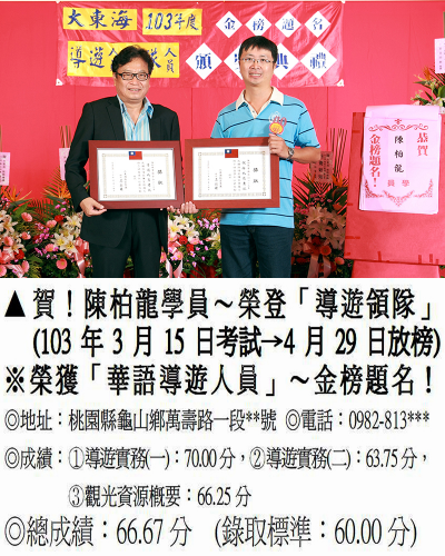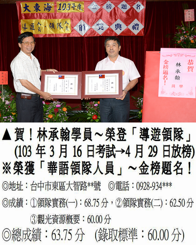錄取分數‧領隊人員‧導遊人員‧證照考試