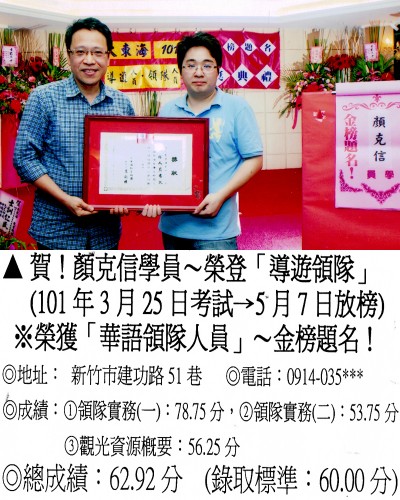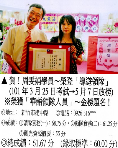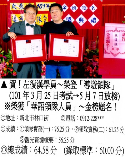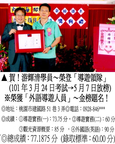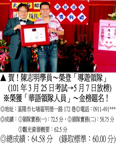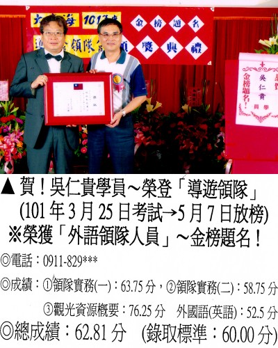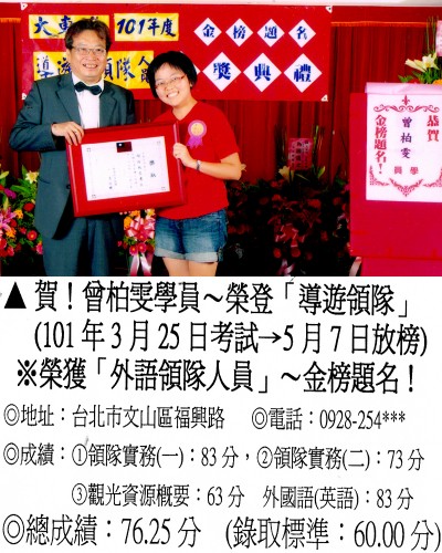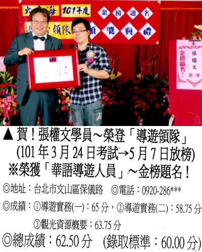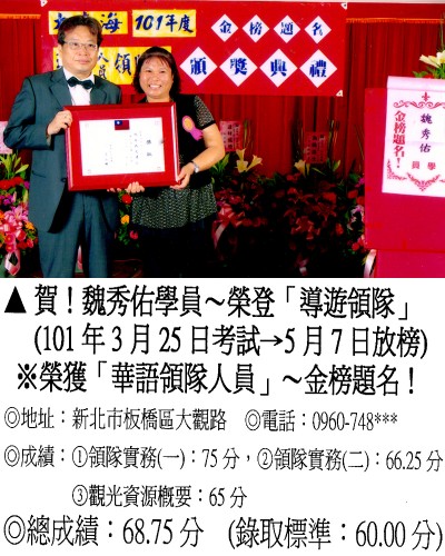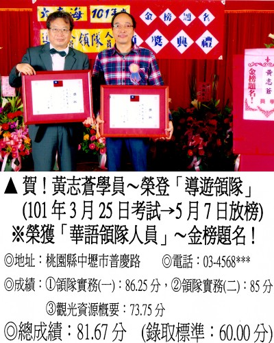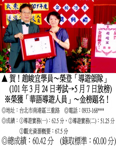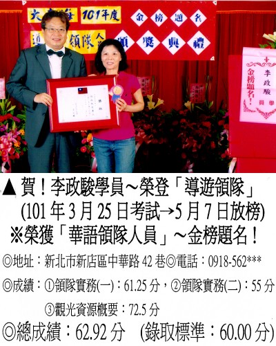 錄取分數‧領隊人員‧導遊人員‧證照考試