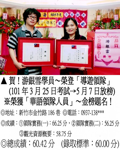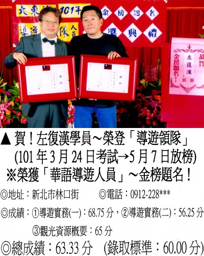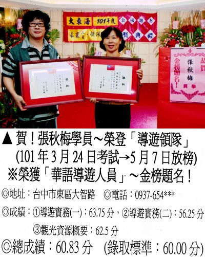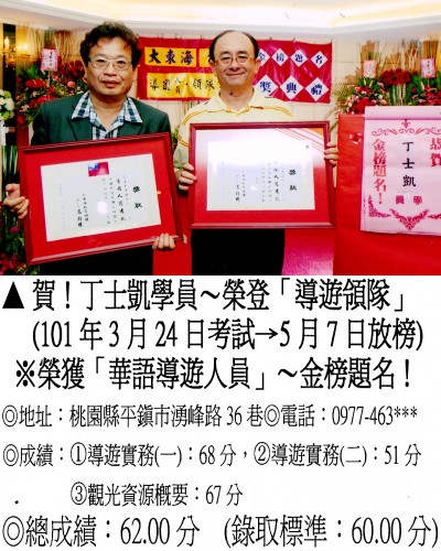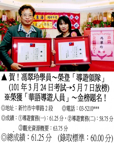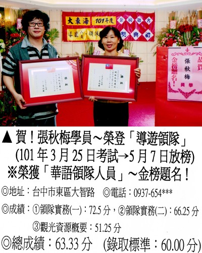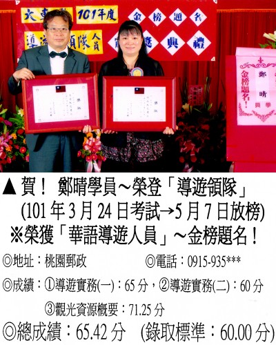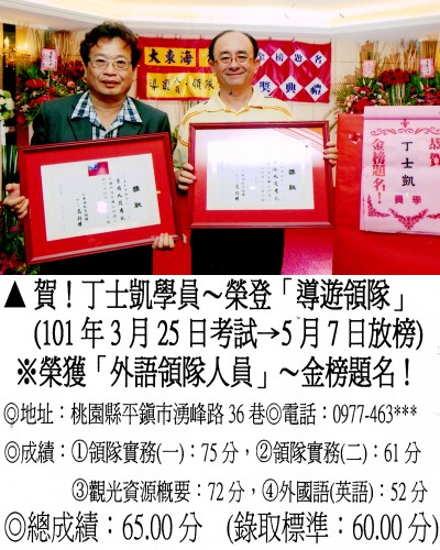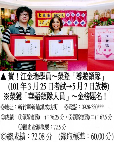 錄取分數‧領隊人員‧導遊人員‧證照考試