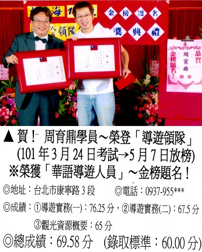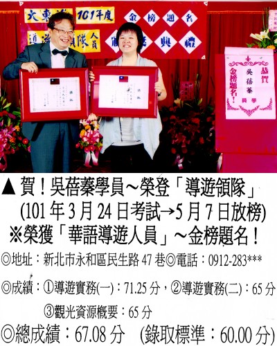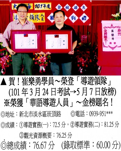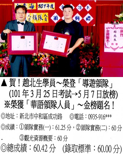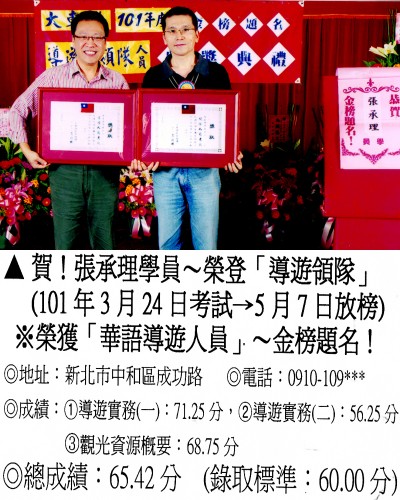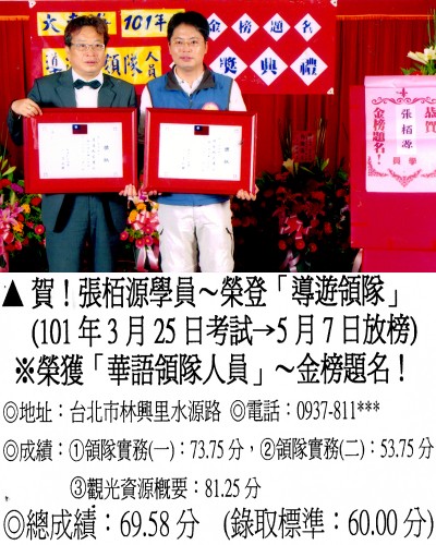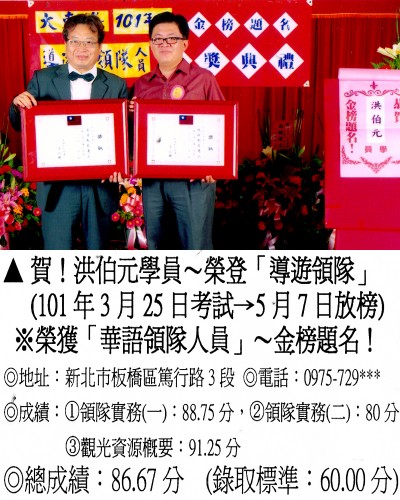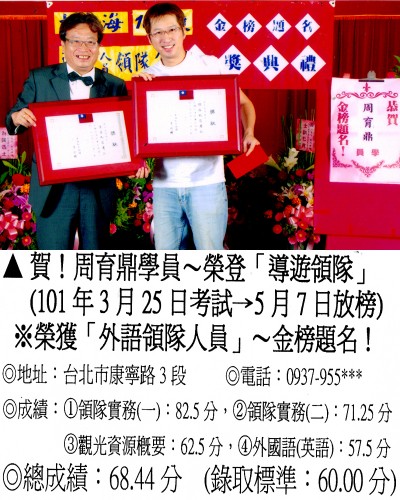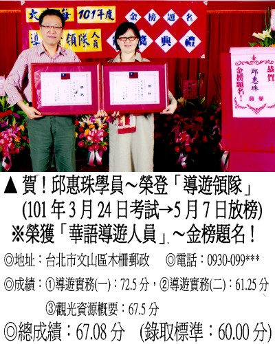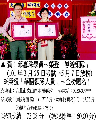 錄取分數‧領隊人員‧導遊人員‧證照考試