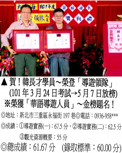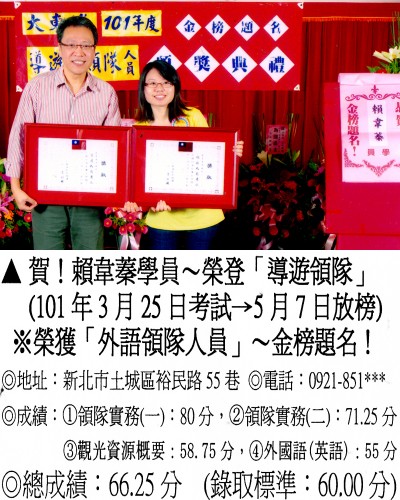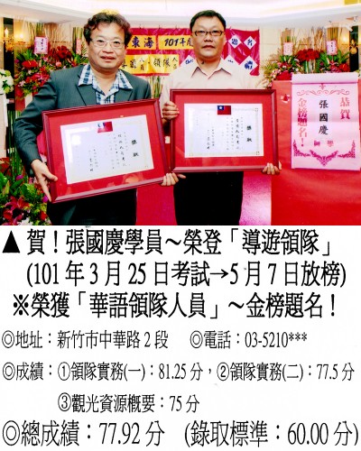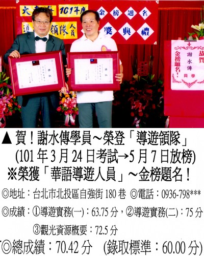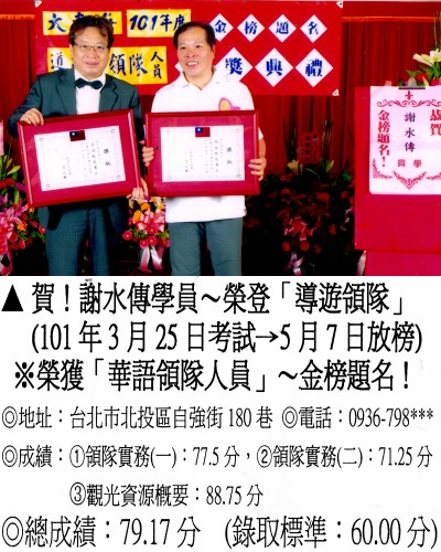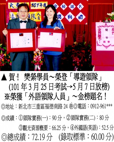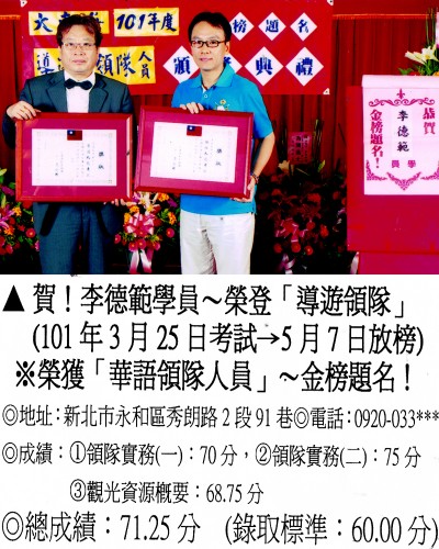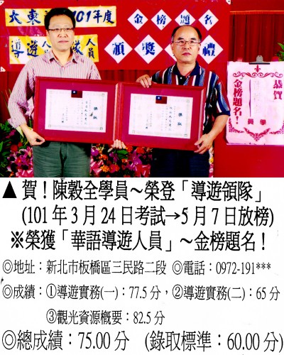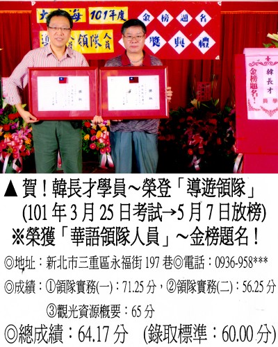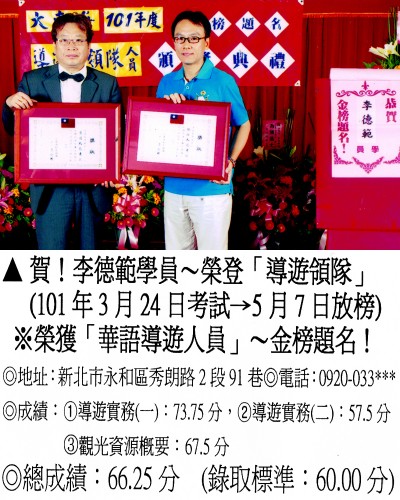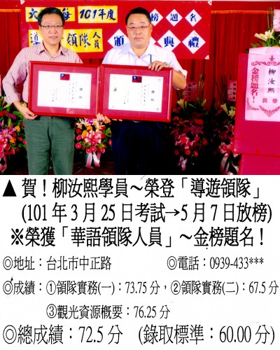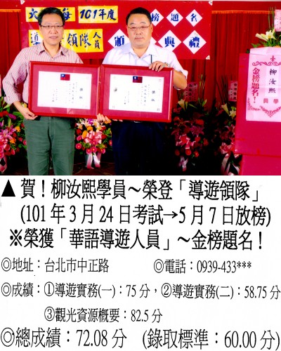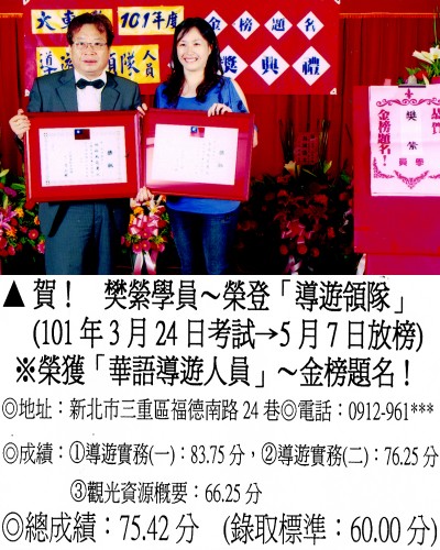 錄取分數‧領隊人員‧導遊人員‧證照考試