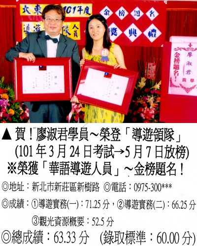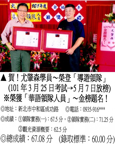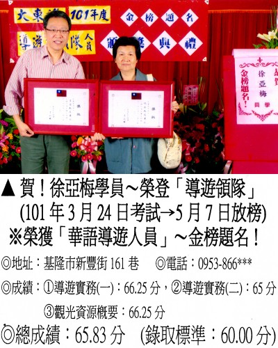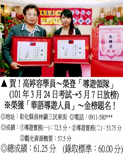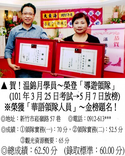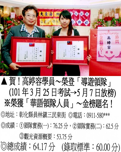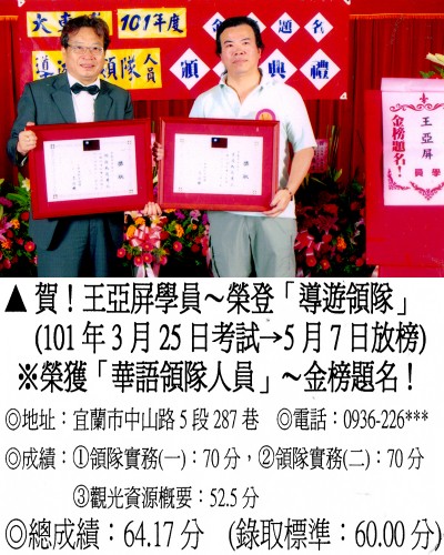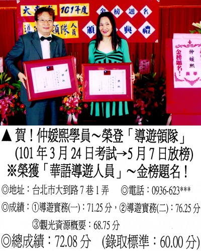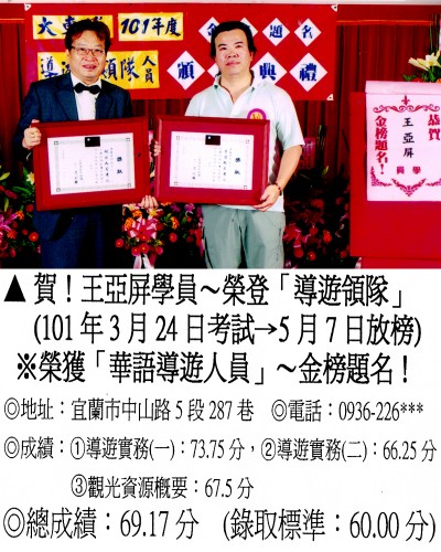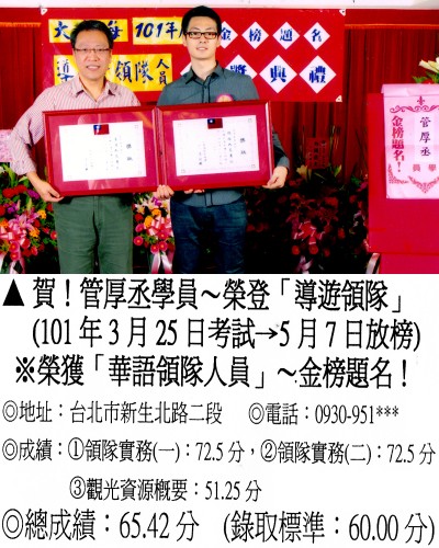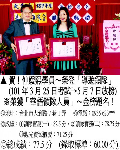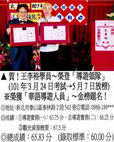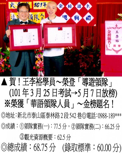 錄取分數‧領隊人員‧導遊人員‧證照考試