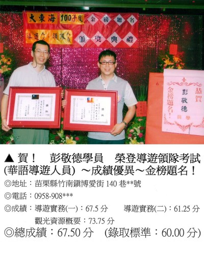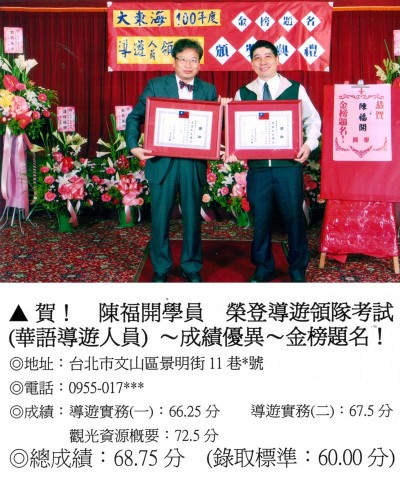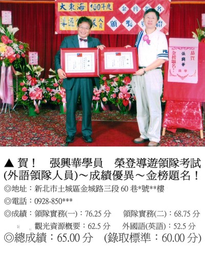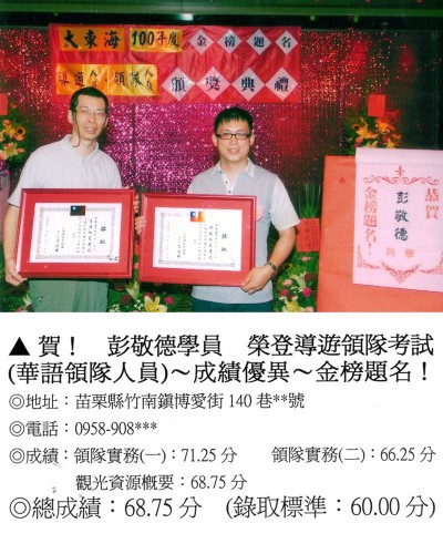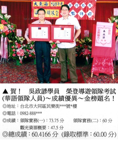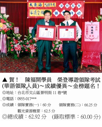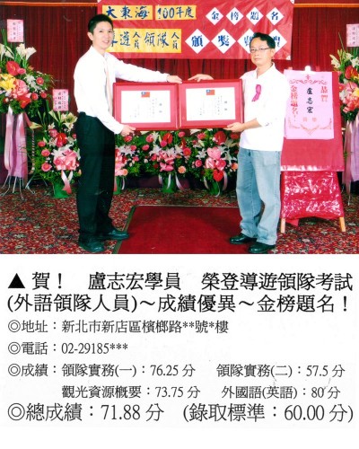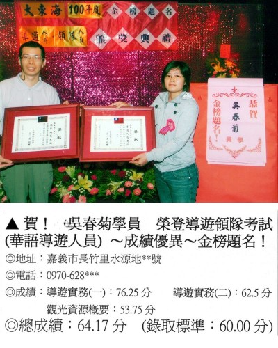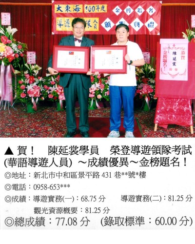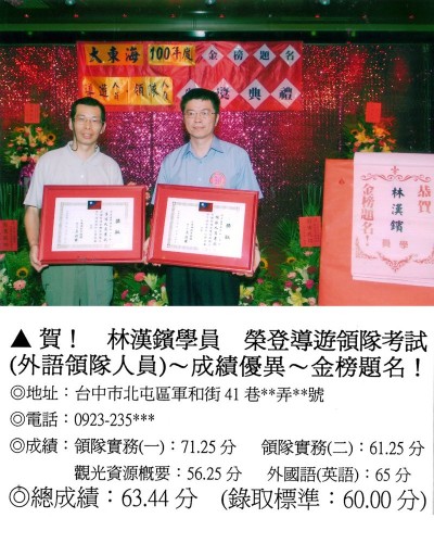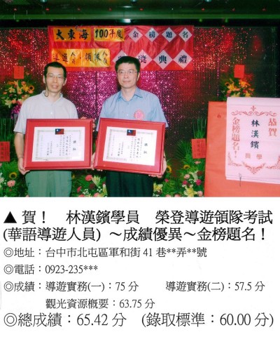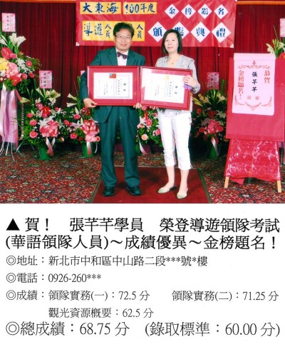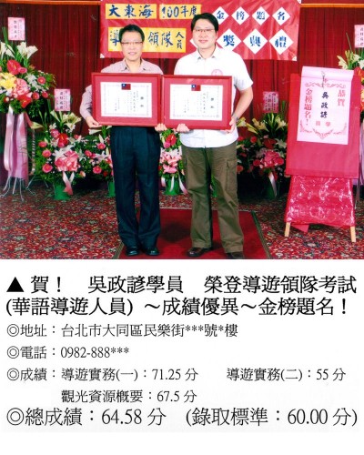 錄取分數‧領隊人員‧導遊人員‧證照考試