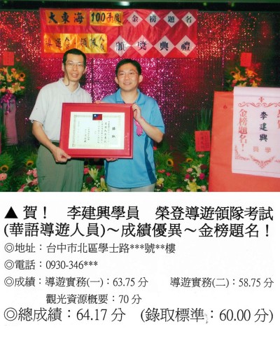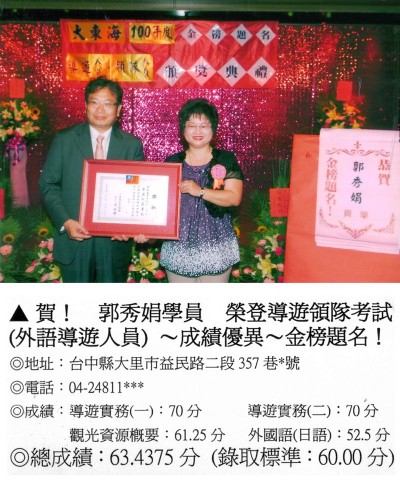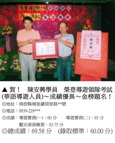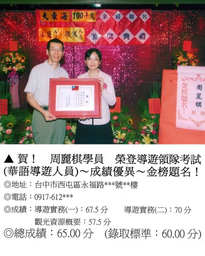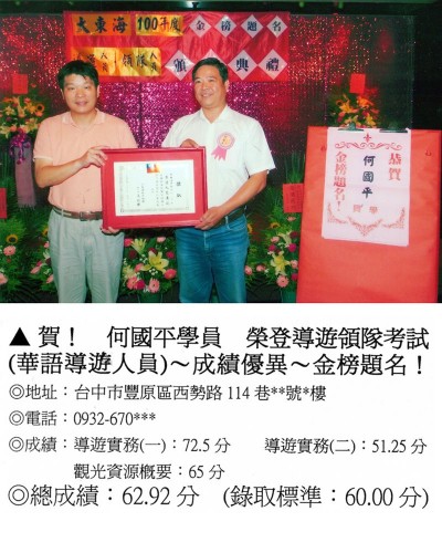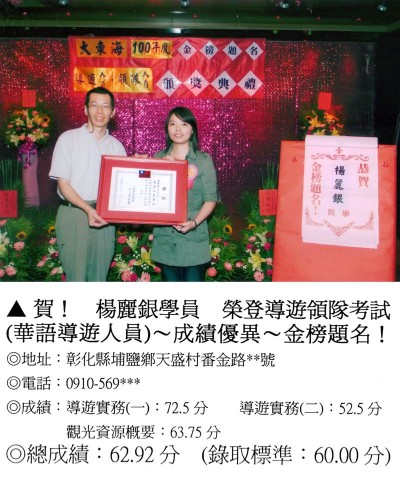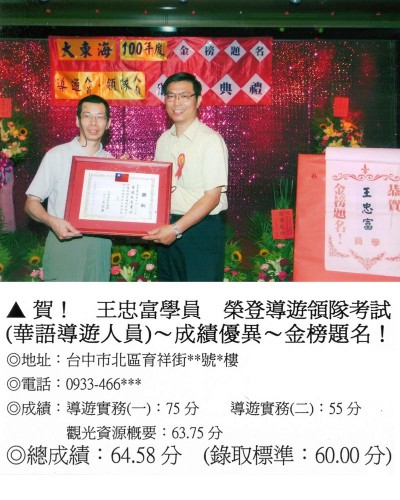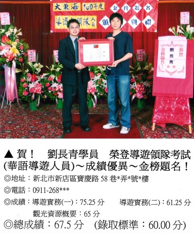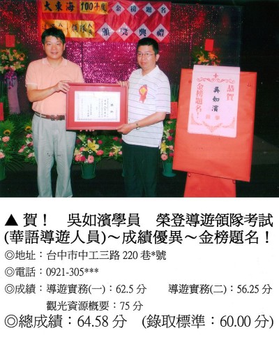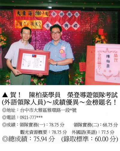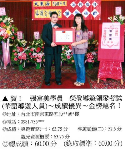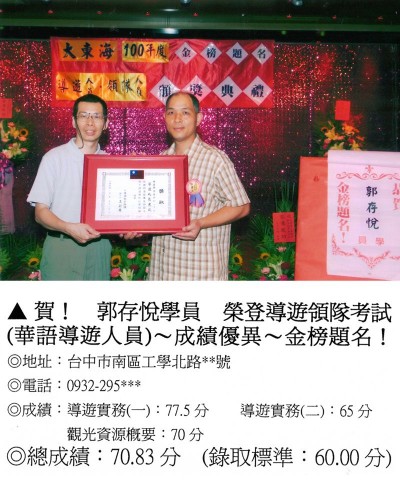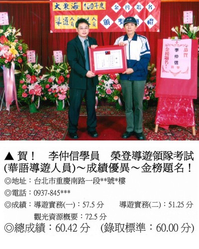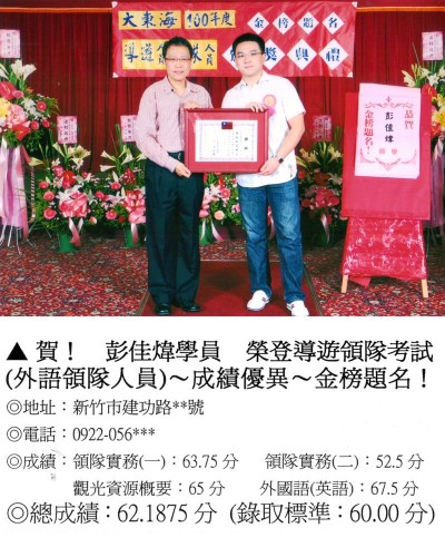 錄取分數‧領隊人員‧導遊人員‧證照考試