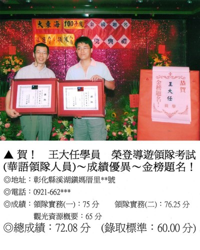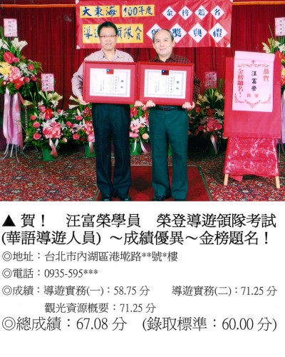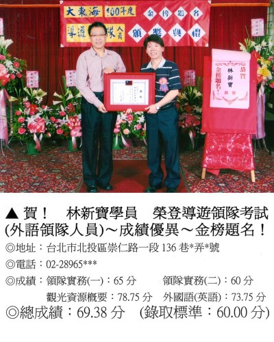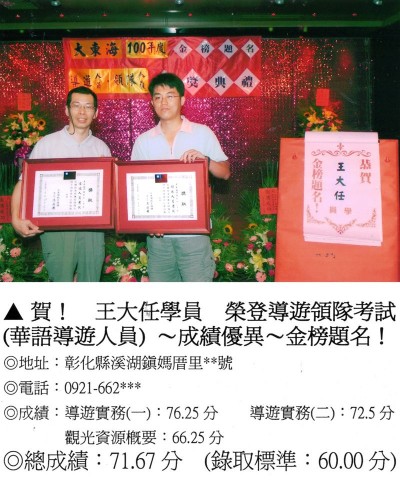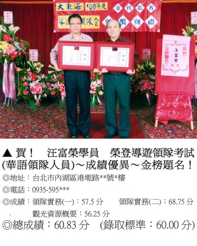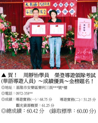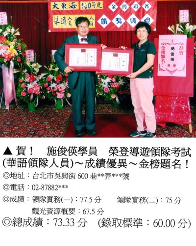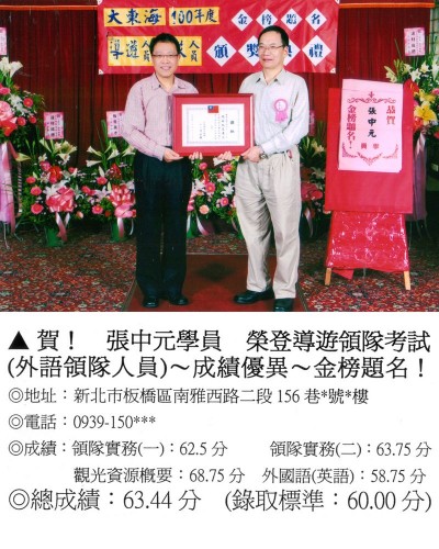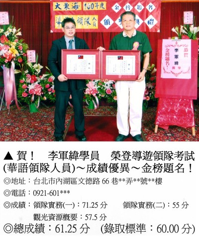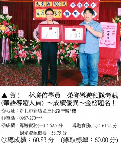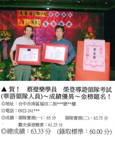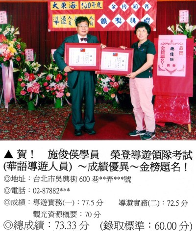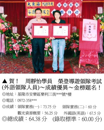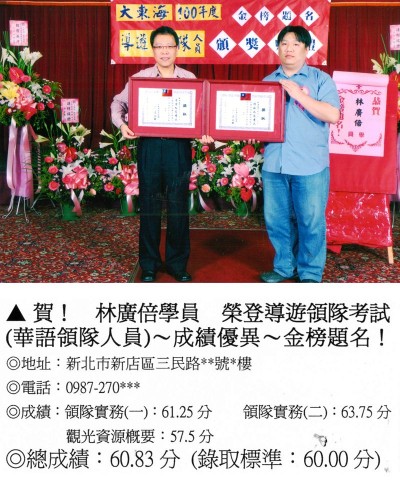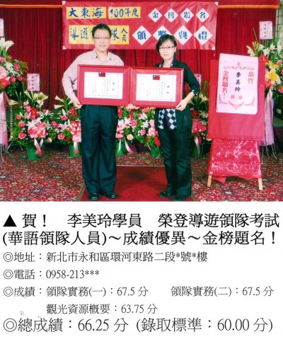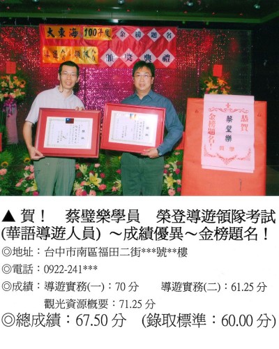 錄取分數‧領隊人員‧導遊人員‧證照考試