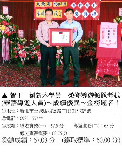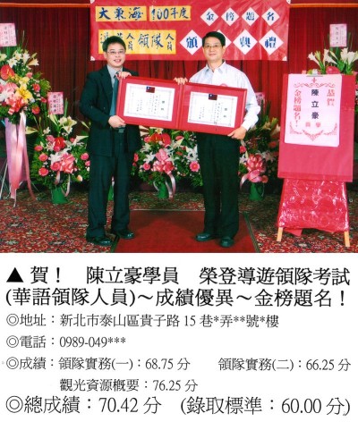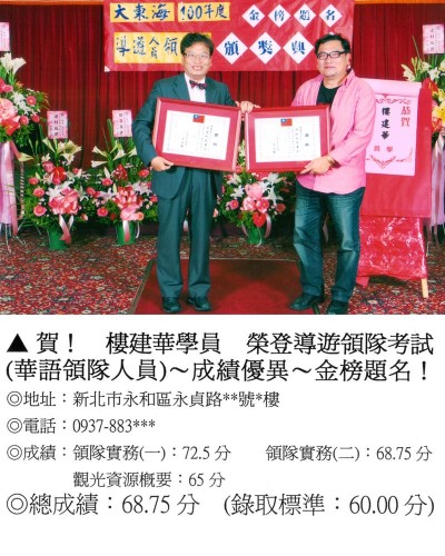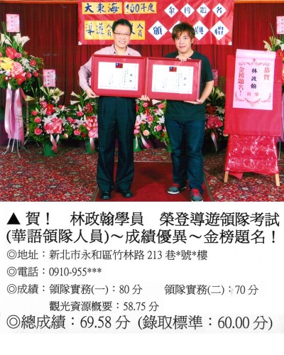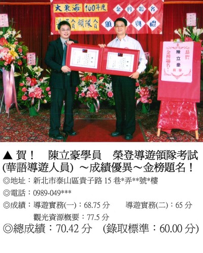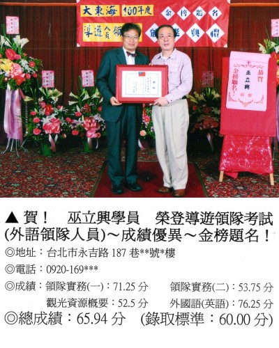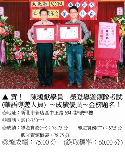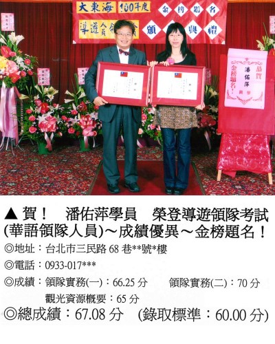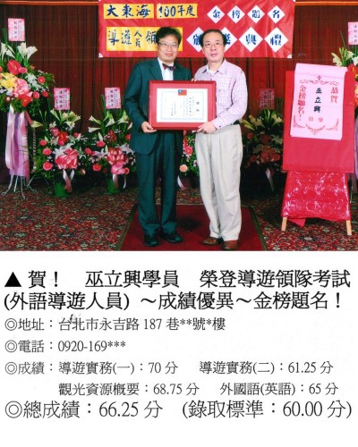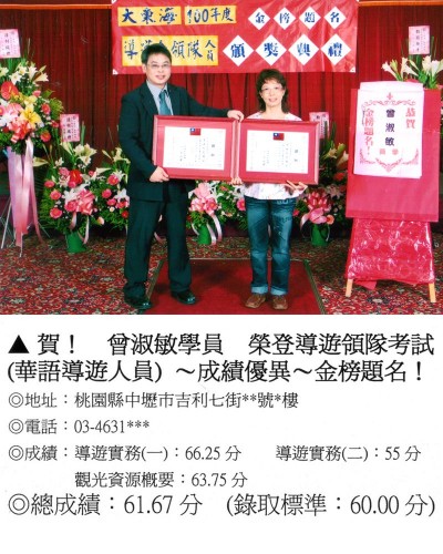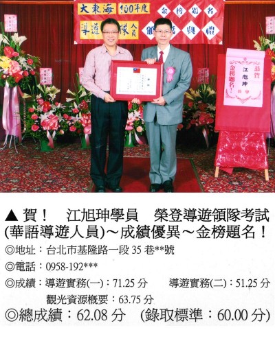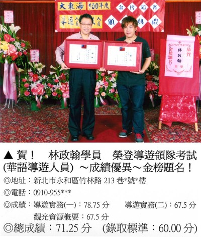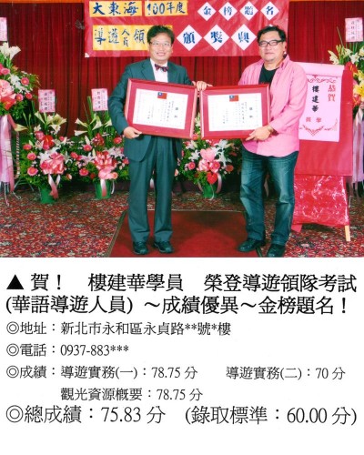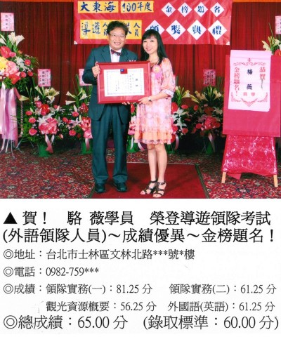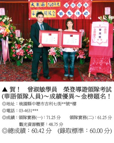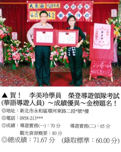 錄取分數‧領隊人員‧導遊人員‧證照考試