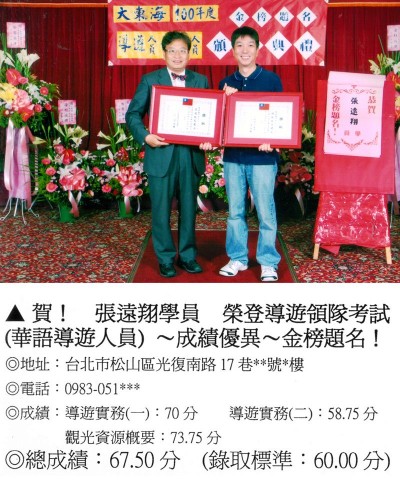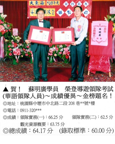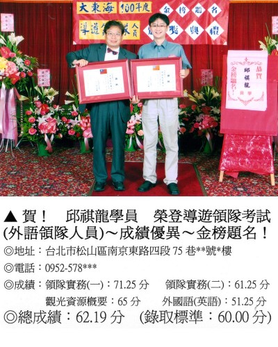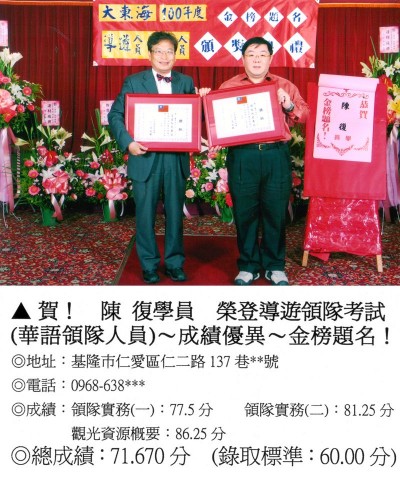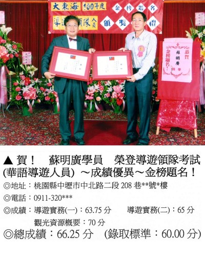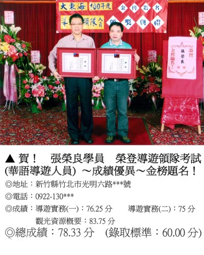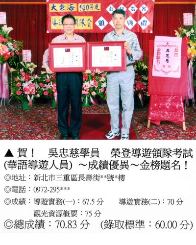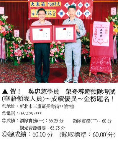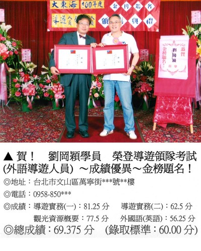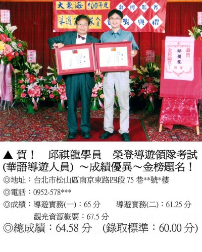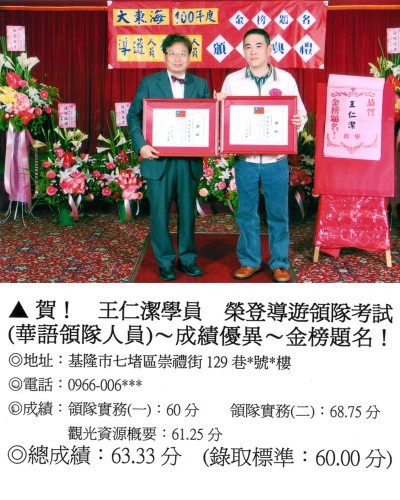 錄取分數‧領隊人員‧導遊人員‧證照考試