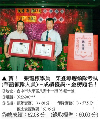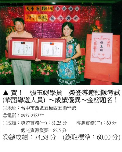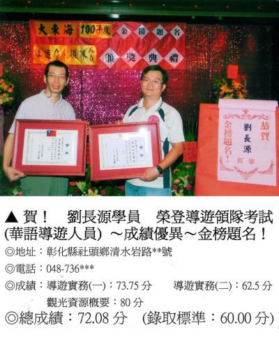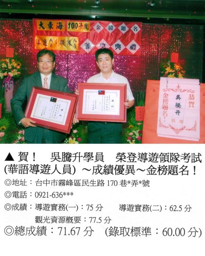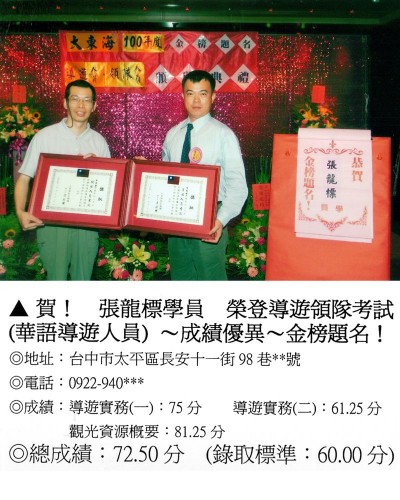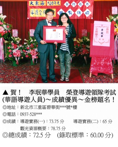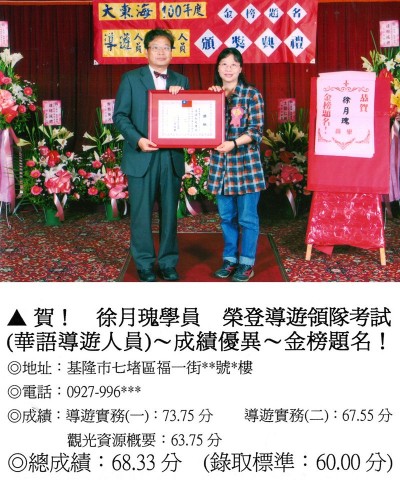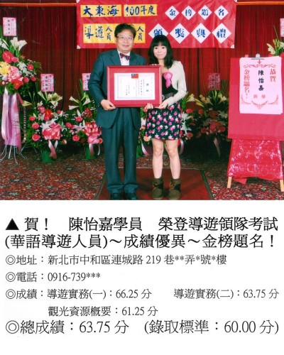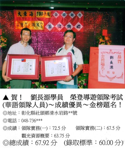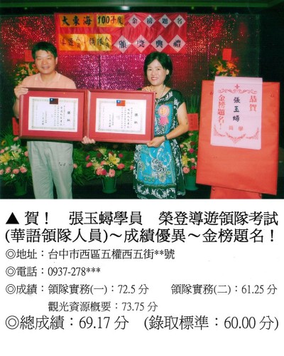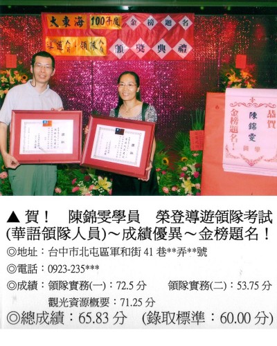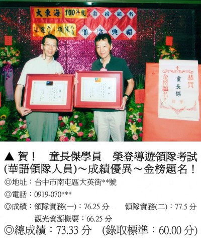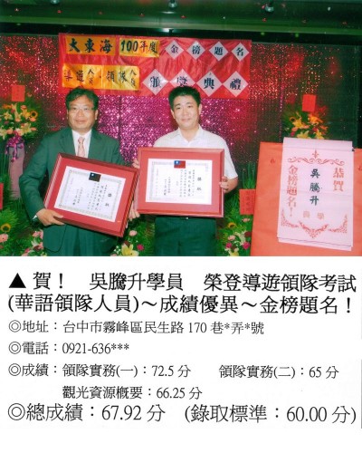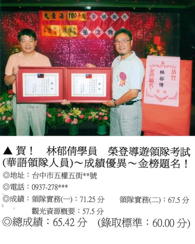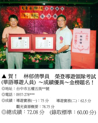 錄取分數‧領隊人員‧導遊人員‧證照考試