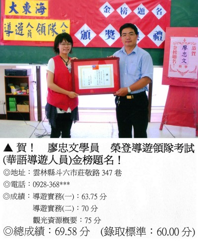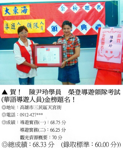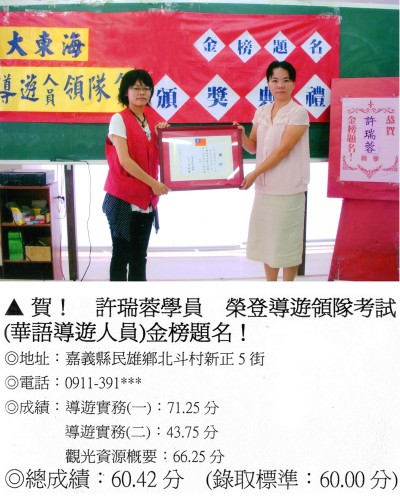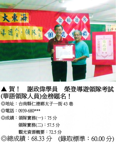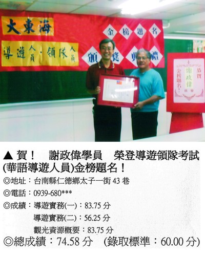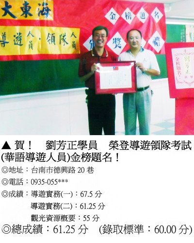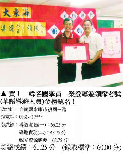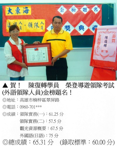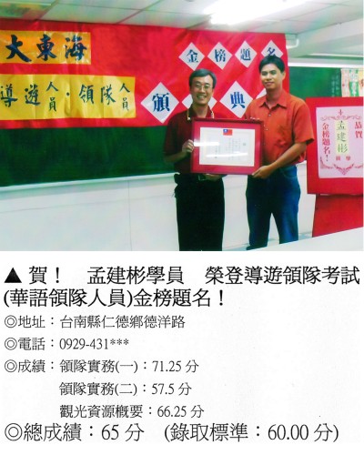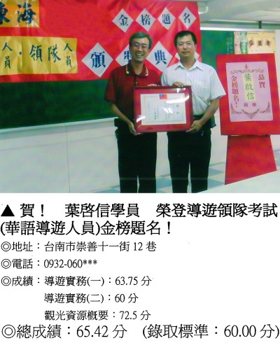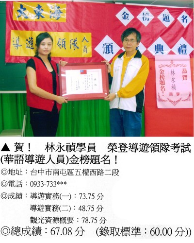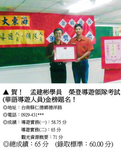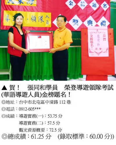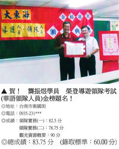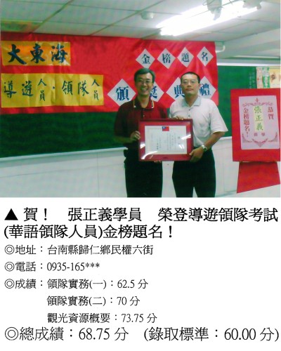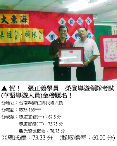 錄取分數‧領隊人員‧導遊人員‧證照考試