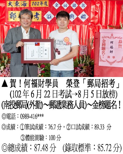 錄取分數‧國營事業‧中華郵局‧電水糖油