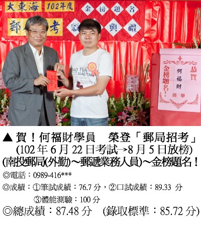 錄取分數‧國營事業‧中華郵局‧電水糖油