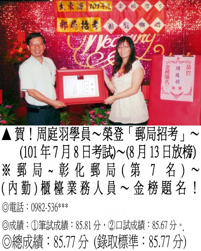 **【考試科目.錄取分數.致勝關鍵】→包含【中華郵政.郵局招考.中華電信】→【共同科目.專業科目:考選擇題.容易準備.最易考取】→【得分之鑰.高分錄取.超高待遇.步步高升】!