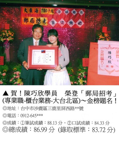 **【考試科目.錄取分數.致勝關鍵】→包含【中華郵政.郵局招考.中華電信】→【共同科目.專業科目:考選擇題.容易準備.最易考取】→【得分之鑰.高分錄取.超高待遇.步步高升】!