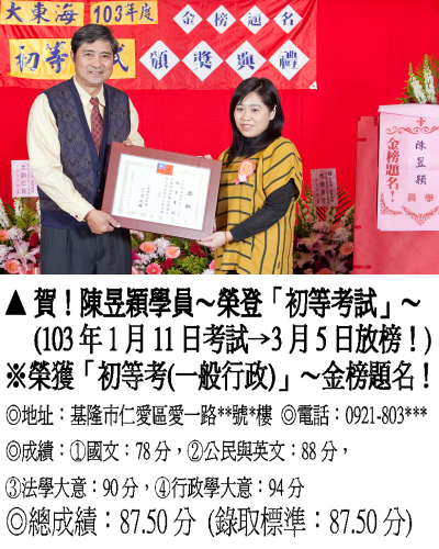 【第壹篇】:【初等考試.不需學歷.只考四科.考選擇題】→【錄取分數.公開展示】!