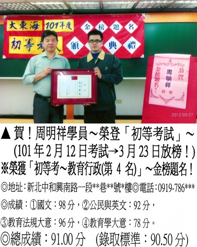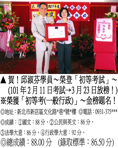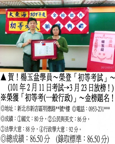 【第壹篇】:【初等考試.不需學歷.只考四科.考選擇題】→【錄取分數.公開展示】!
