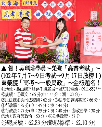 【第壹篇】:【高考普考.地方特考.錄取分數】→【考申論題.高分錄取.榮登金榜】