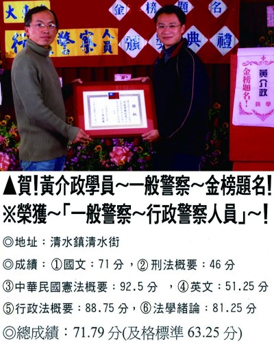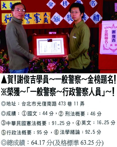 【第二篇】:【警察特考.警專招考.法警招考.海巡特考】→【錄取分數.高分錄取.榮登金榜】