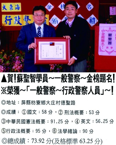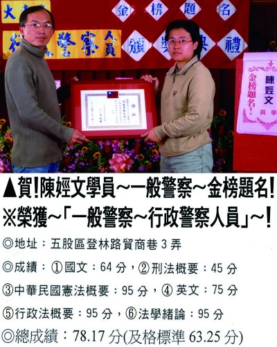 【第二篇】:【警察特考.警專招考.法警招考.海巡特考】→【錄取分數.高分錄取.榮登金榜】