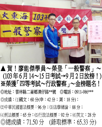 【第二篇】:【警察特考.警專招考.法警招考.海巡特考】→【錄取分數.高分錄取.榮登金榜】