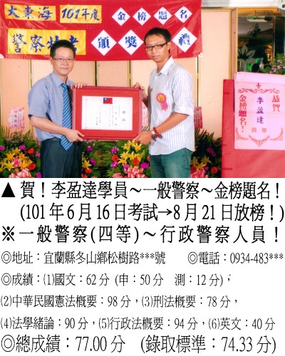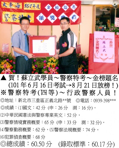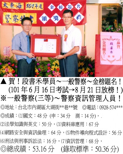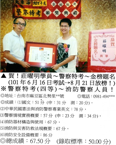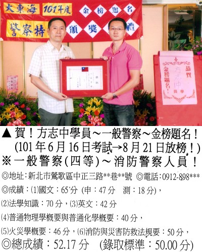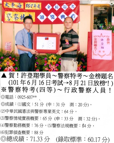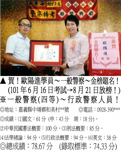 【第二篇】:【警察特考.警專招考.法警招考.海巡特考】→【錄取分數.高分錄取.榮登金榜】