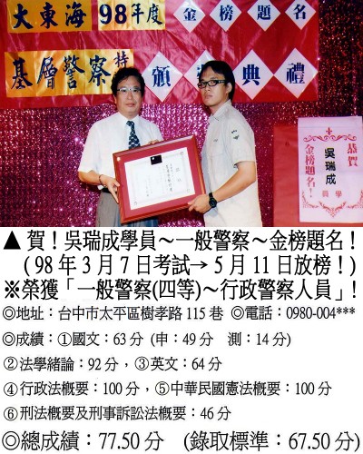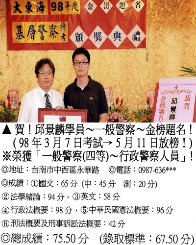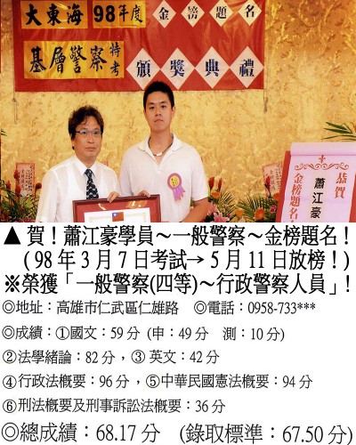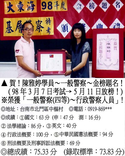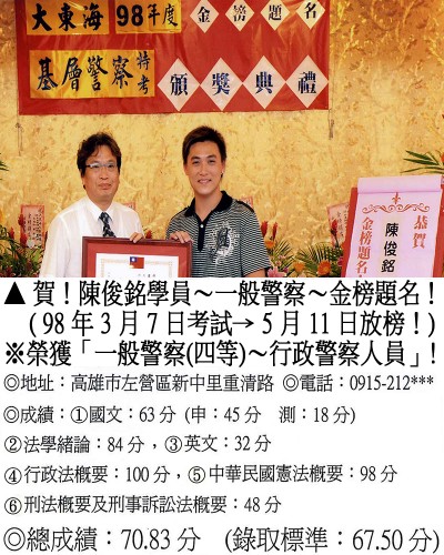 【第二篇】:【警察特考.警專招考.法警招考.海巡特考】→【錄取分數.高分錄取.榮登金榜】