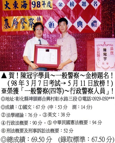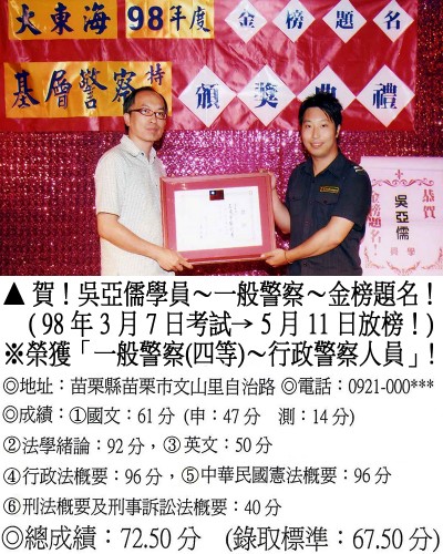 【第二篇】:【警察特考.警專招考.法警招考.海巡特考】→【錄取分數.高分錄取.榮登金榜】