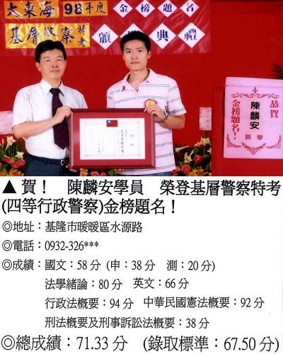 【第二篇】:【警察特考.警專招考.法警招考.海巡特考】→【錄取分數.高分錄取.榮登金榜】