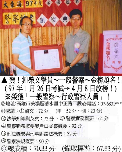 【第二篇】:【警察特考.警專招考.法警招考.海巡特考】→【錄取分數.高分錄取.榮登金榜】