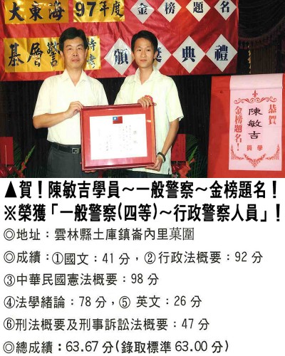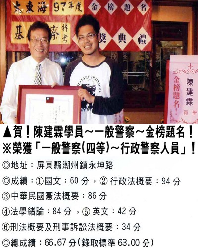 【第二篇】:【警察特考.警專招考.法警招考.海巡特考】→【錄取分數.高分錄取.榮登金榜】