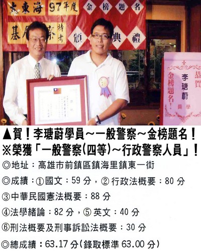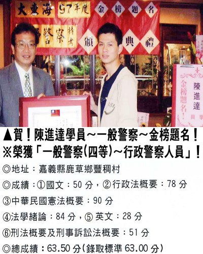 【第二篇】:【警察特考.警專招考.法警招考.海巡特考】→【錄取分數.高分錄取.榮登金榜】