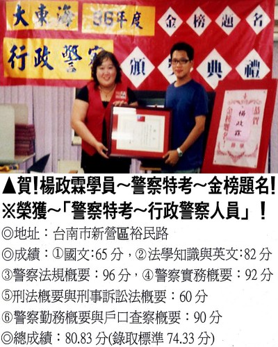 【第二篇】:【警察特考.警專招考.法警招考.海巡特考】→【錄取分數.高分錄取.榮登金榜】