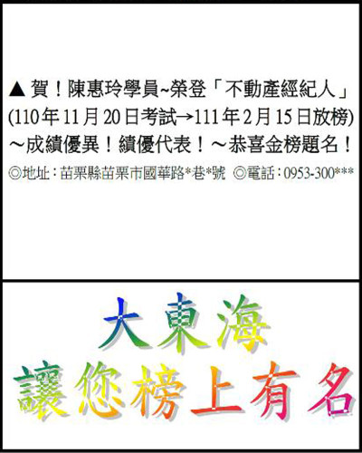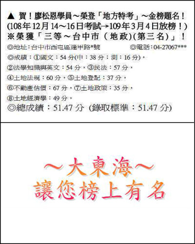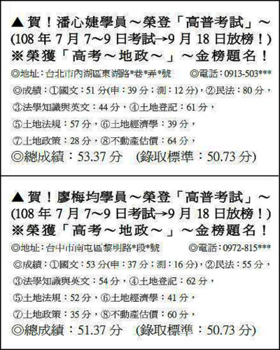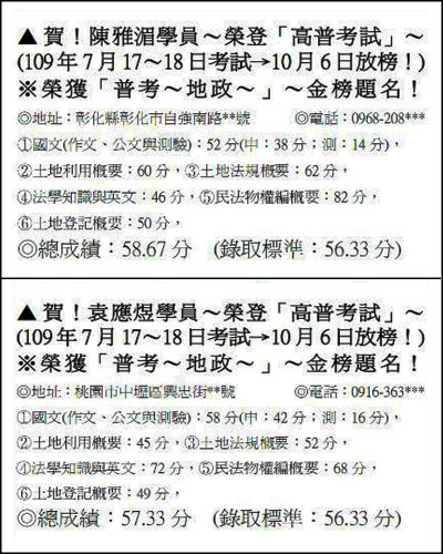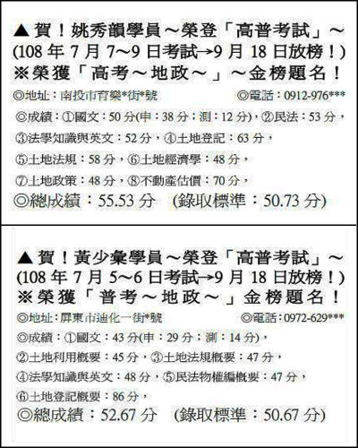 **【考試科目.必考科目.錄取分數.參考模擬】→包含【公職考試.土地行政.地政士考照.不動產經紀人考照】→請續看【大東海(學長姐)~金榜題名.成功範例.輝煌成果.績優代表.錄取分數】