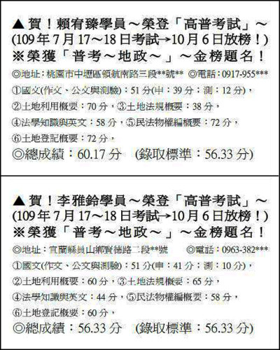 錄取分數‧地政人員‧土地行政‧地政士考‧不動產人