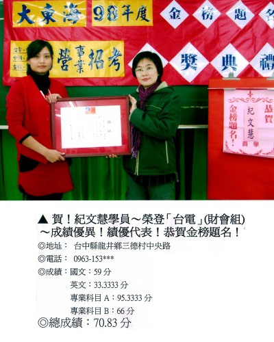 錄取分數‧國營事業‧中華郵局‧電水糖油