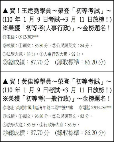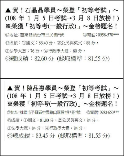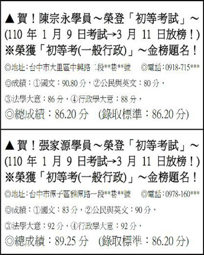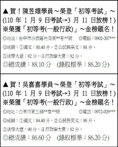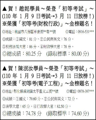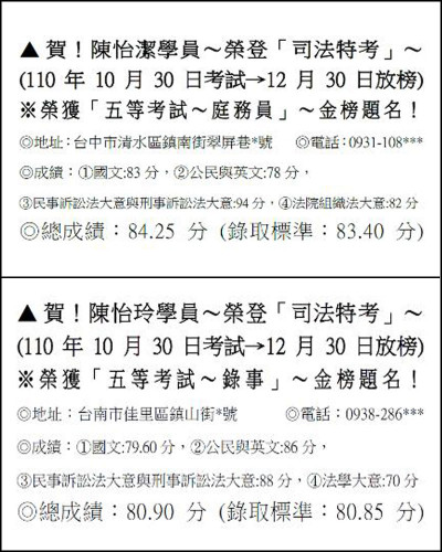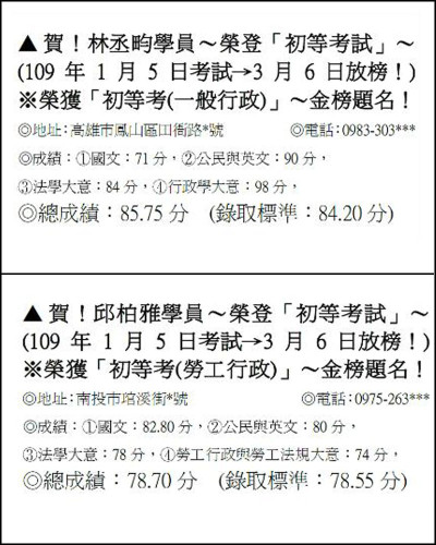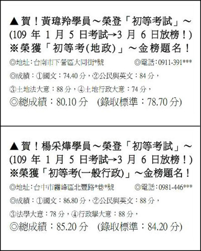 **【考試科目.必考科目.各科分數.錄取標準】→包含【初等考試.地方五等.司法五等.原民五等.身心五等.關務五等.調查五等.鐵路佐級.台鐵營運】→敬請續看【大東海(學長姐)~金榜題名.成功範例.輝煌成果.績優代表.錄取分數】