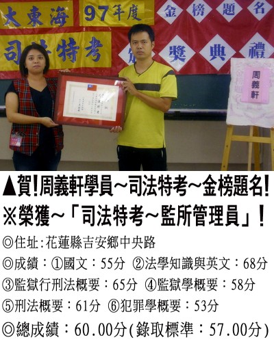 【第參篇】:【司法特考.調查局考.國安特考.外交特考.移民特考】→【錄取分數.高分錄取.榮登金榜】