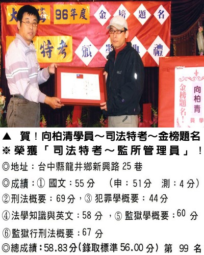 【第參篇】:【司法特考.調查局考.國安特考.外交特考.移民特考】→【錄取分數.高分錄取.榮登金榜】