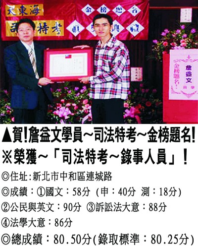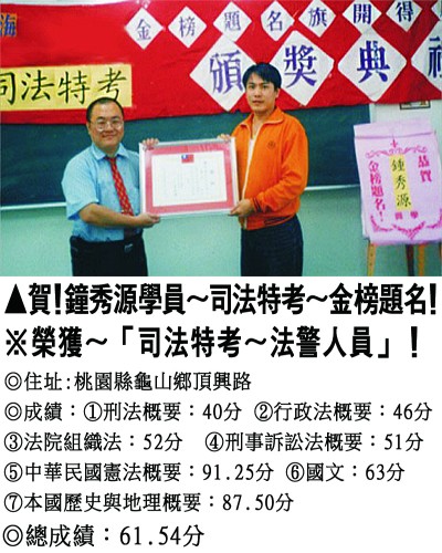 【第參篇】:【司法特考.調查局考.國安特考.外交特考.移民特考】→【錄取分數.高分錄取.榮登金榜】
