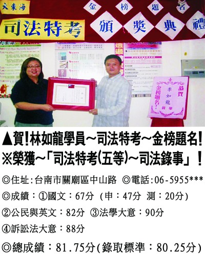 【第參篇】:【司法特考.調查局考.國安特考.外交特考.移民特考】→【錄取分數.高分錄取.榮登金榜】