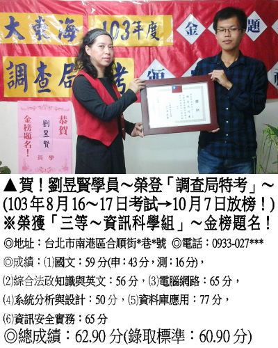 【第參篇】:【司法特考.調查局考.國安特考.外交特考.移民特考】→【錄取分數.高分錄取.榮登金榜】