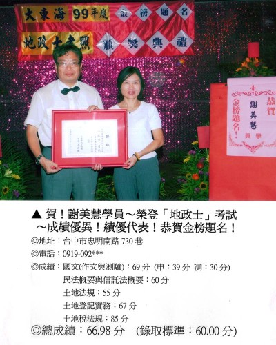 **【考試科目.錄取分數.致勝關鍵】→包含【地政士(土地代書)考照.證照考試】→【共同科目.專業科目:平均(60分及格),就可錄取.最易準備.好考易中】→【務必把握機會!創造錦繡前程!】!