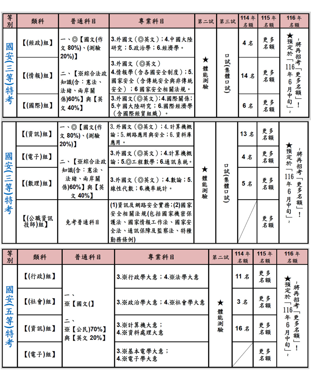 (4)【114年06 月 14 日】→「國安(三等.五等)特考」