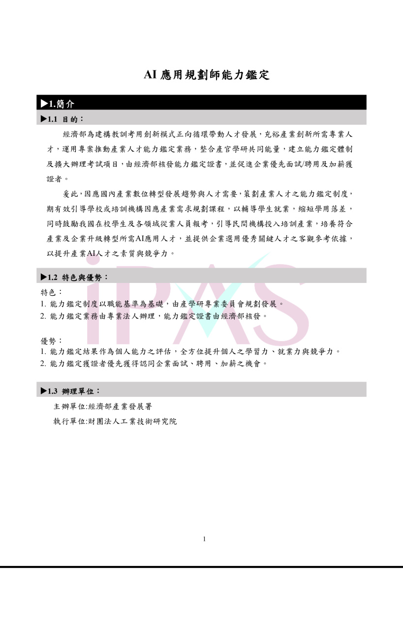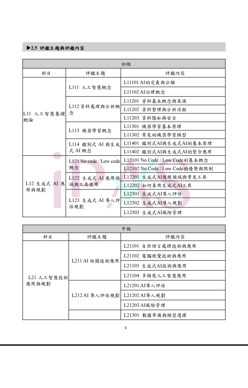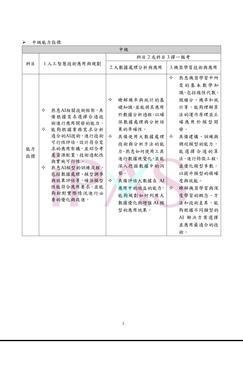 二、 114 年度 AI 應用規劃師能力鑑定(中級科目抵免辦法)