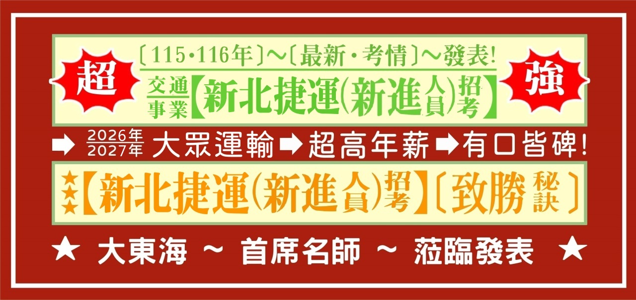 (六)【新北捷運】招考:【經管組】~【(營運)人員】
