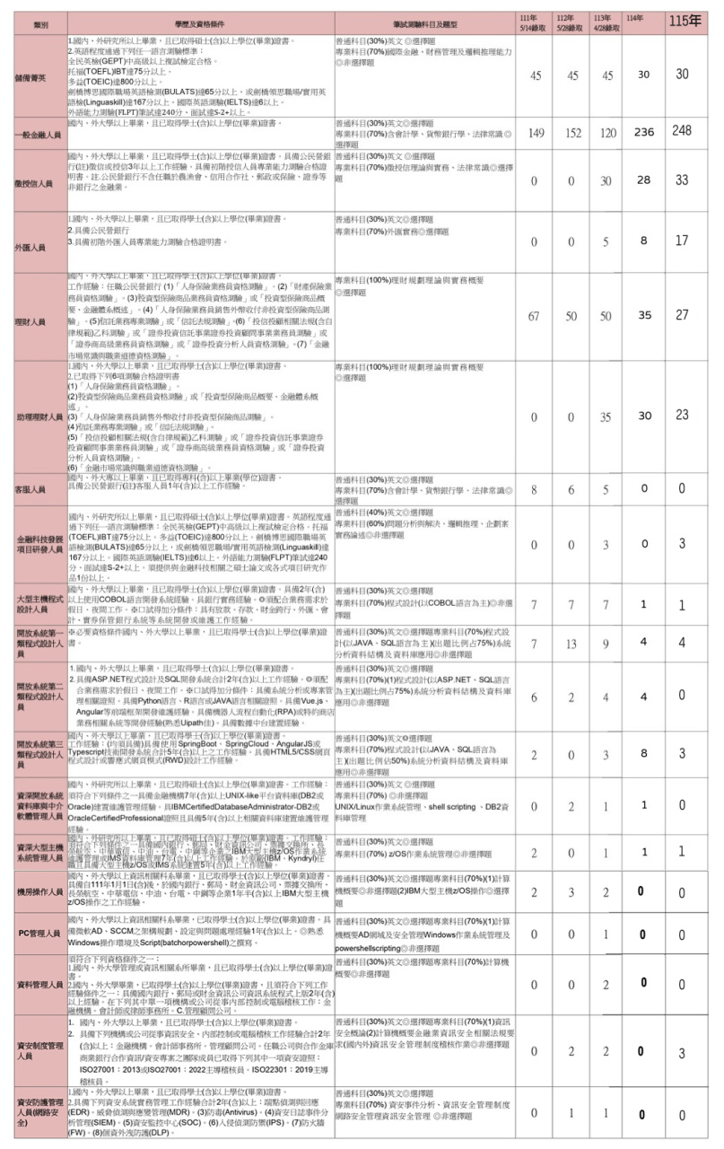 115年 合作金庫銀行(新進人員) 報名資格、考試科目、薪資待遇