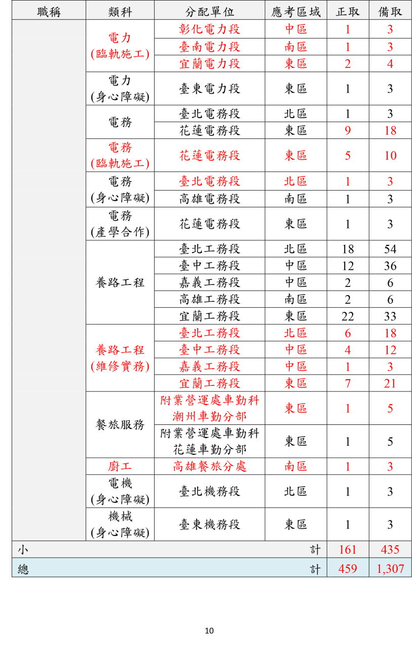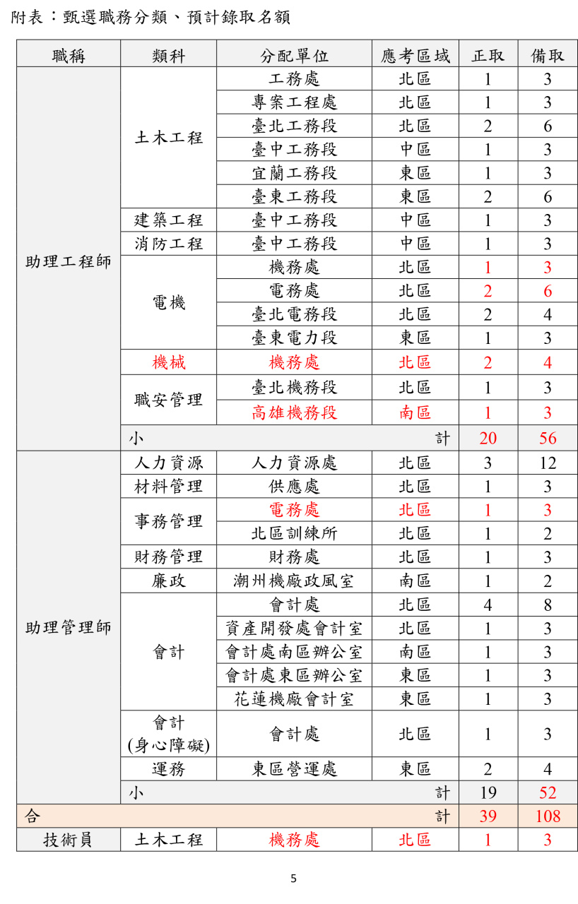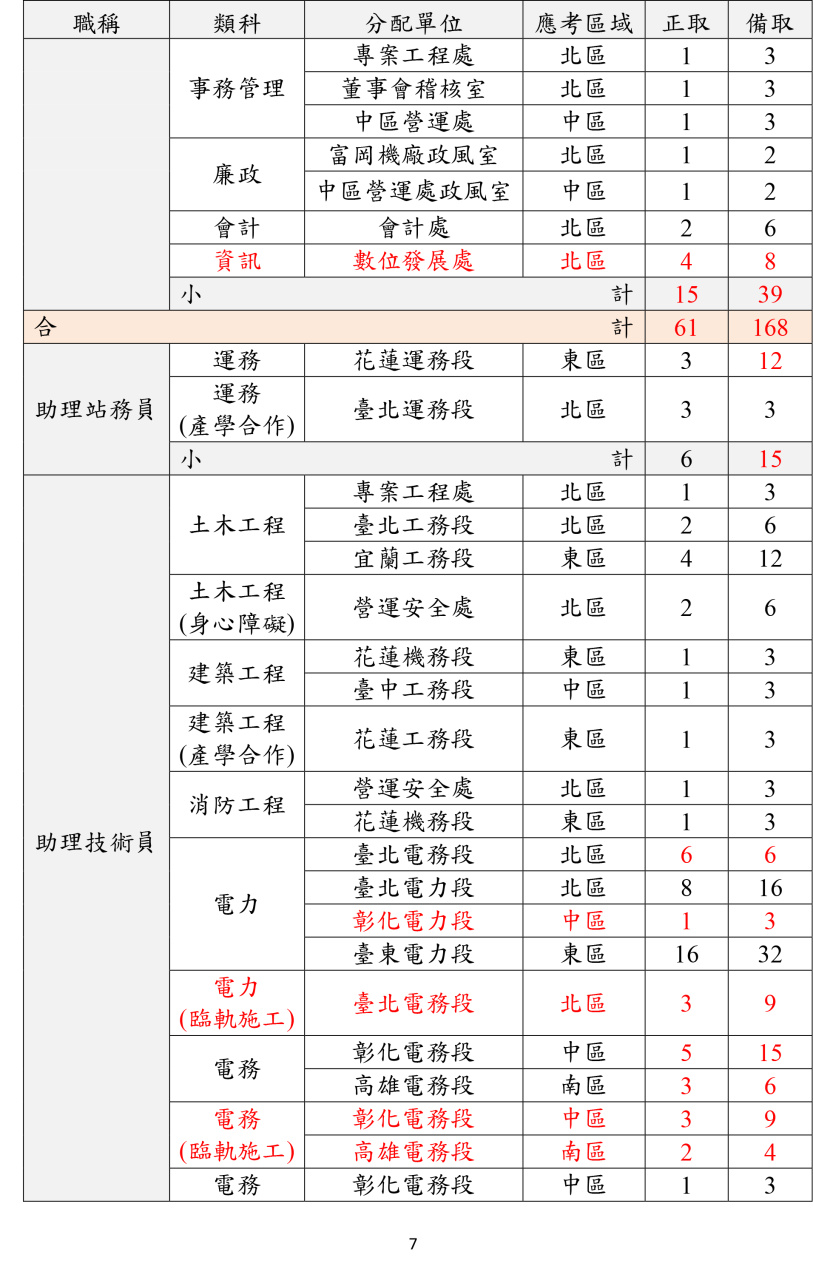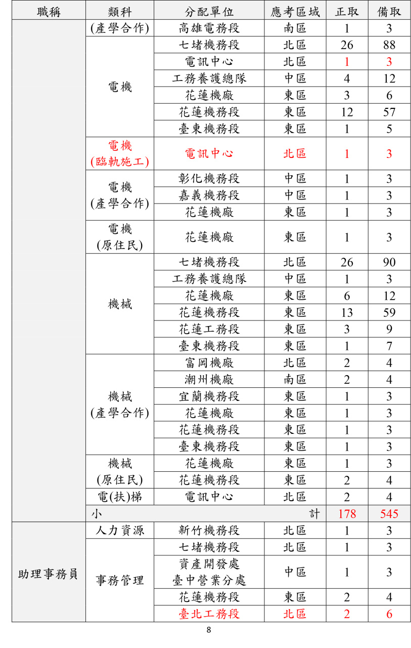 ★、【(台鐵公司)招考】~【(各類組)之(錄取名額)】: