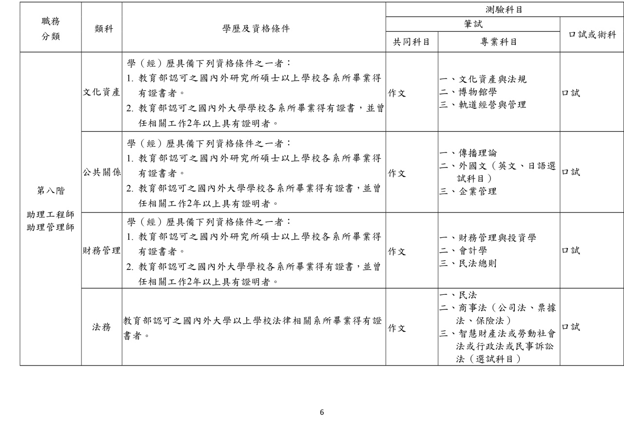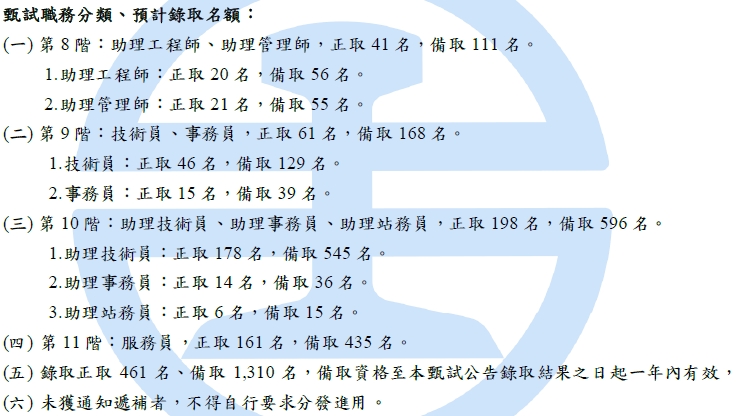 註:招考企劃研析類科共釋出正取 6 名、備取 18 名 名額,細分為兩階職等: