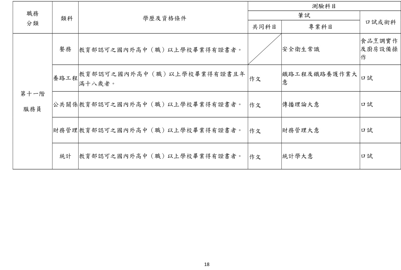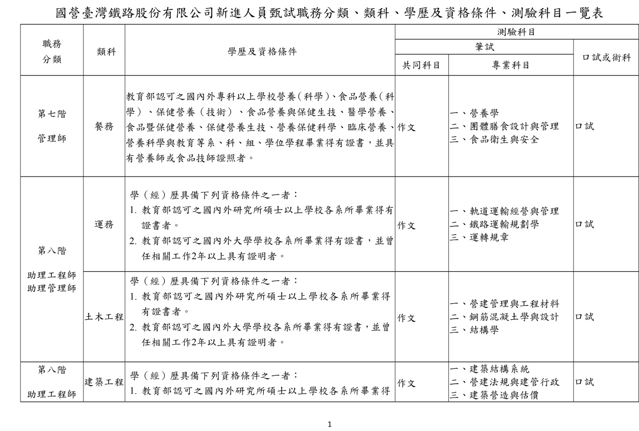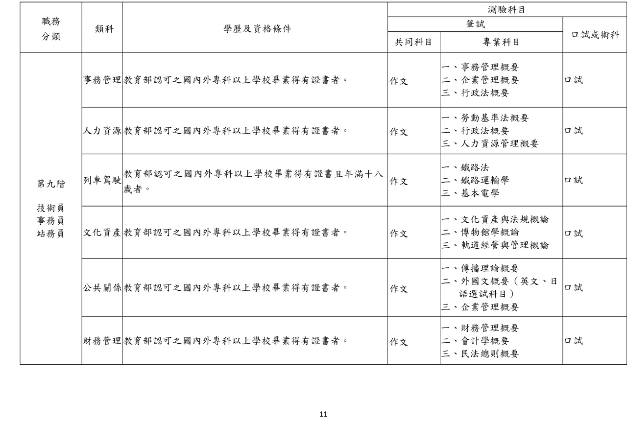 ( 1 ).【台鐵 (第十一階)】招考類別: